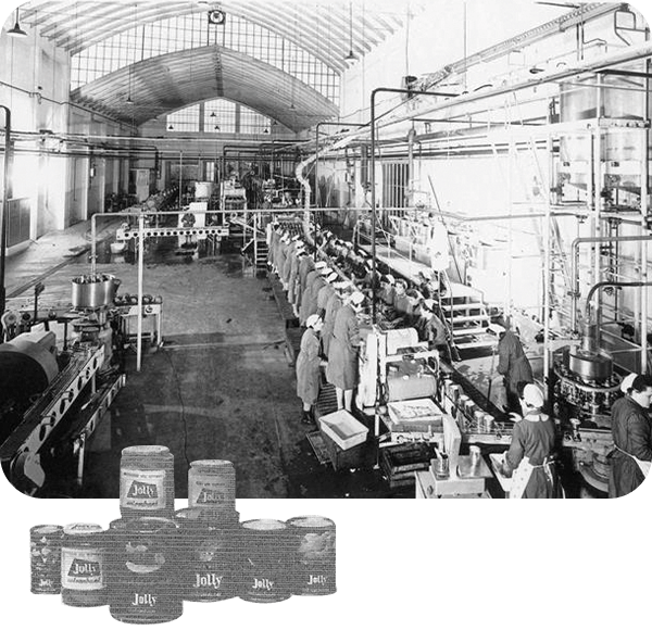 Il dopo guerraDopo la fine della guerra, che aveva causato la distruzione quasi totale dello stabilimento, l’attività riprende. Colombani estende la produzione, introducendo la frutta allo sciroppo.
